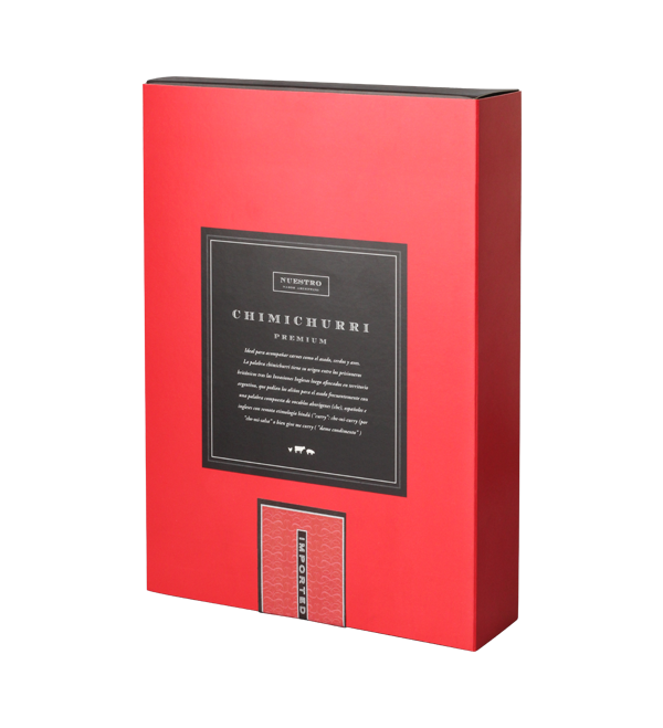 El Chimichurri es una típica salsa sabrosa con ingredientes naturales y orgánicos procedentes de Mendoza al pie de la Cordillera de Los Andes. La caja incluye tres botellas: 250ml de Aceite de Oliva Virgen Extra, 250ml de Vinagre de vino y 100grs de mezcla de especies.